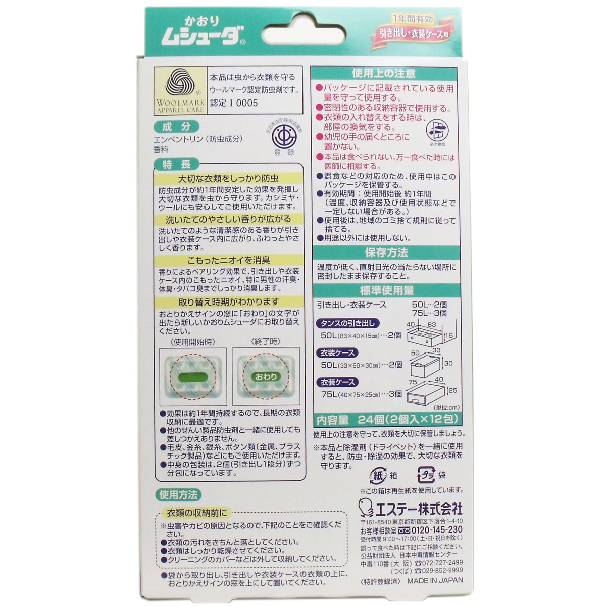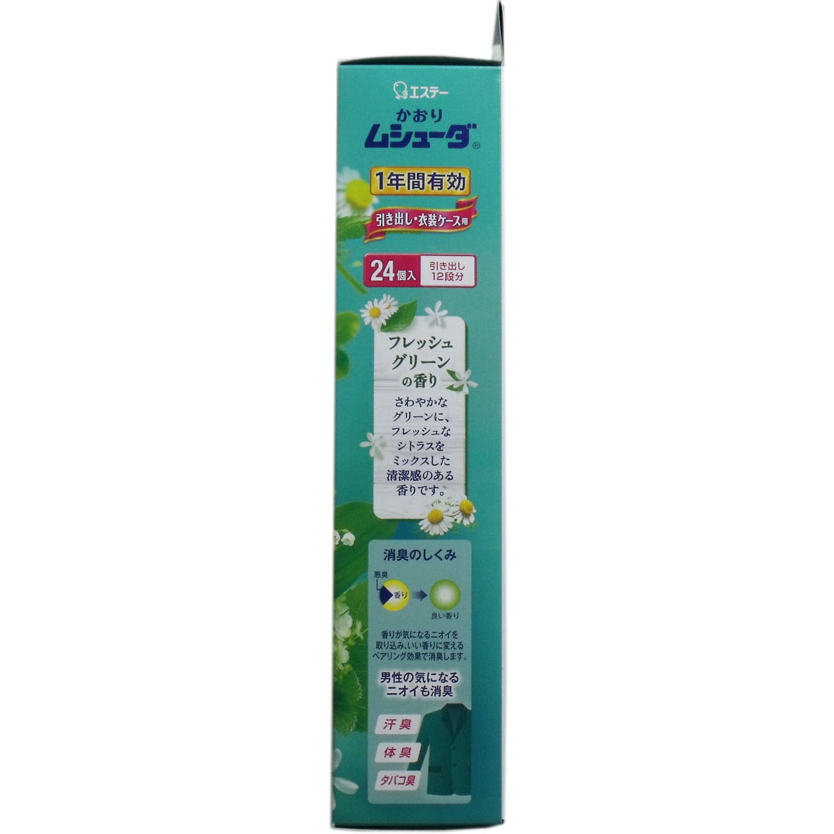 大感謝価格『かおりムシューダ 引き出し・衣装ケース用 1年間有効 フレッシュグリーンの香り 24個入』返品キャンセル不可品、お取り寄せ品生活雑貨 防虫剤『かおりムシューダ 引き出し・衣装ケース用 1年間有効 フレッシュグリーンの香り』
