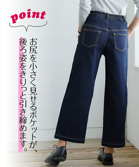 他のサイズは以下をご覧ください LL はこちら裏フリースストレッチデニム9分丈ワイドパンツ ニッセン nissen ネイビー ネイビー系 カラー ネイビー/ネイビー系 サイズ S/M/L 備考 ※商品サイズは仕上がりサイズとなります。