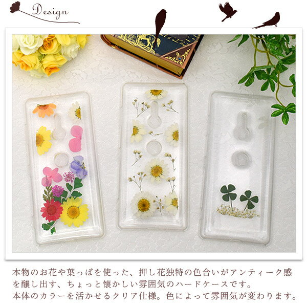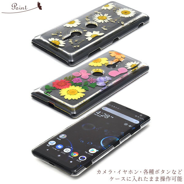Xperia XZ3 SO-01L/SOV39/801SO用カバー 押し花ハードケース Xperia XZ3 SO-01L/SOV39/801SO用の本物のお花を使用した押し花ハードケース。