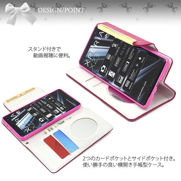 製品仕様 対応機種 Xperia XZ3 SO-01L/SOV39/801SO 素材 合皮(PUレザー:エナメル加工)/TPU カラー ゴールド/ビビッドピンク/ブラック サイズ(約) 縦163×横80×厚さ17mm 重さ(約) 95g 注意 ※スマートフォンは付属しません。