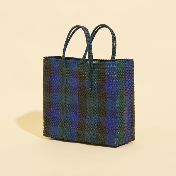 チェック柄に編み上げた個性豊かな<OJO DE MEX>のメルカドバッグ。