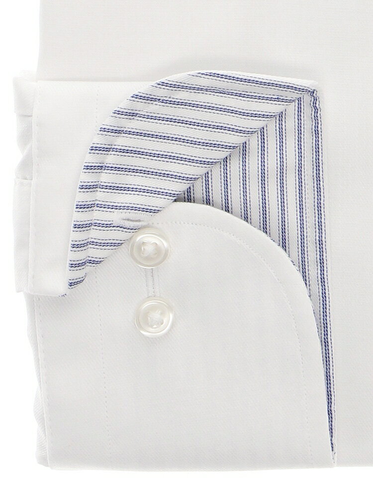 【襟】ワイド/キーパー取り外し可【袖】長袖/カフリンクス使用可・袖口調節可【前身頃】胸ポケット/フレンチフロント【後身頃】ヨーク/背ダーツ【モデル】Easy Care Shirt 〔EC・BASIC〕【柄】織柄【素材】コットン60%/ポリエステル40% 別布:コットン60%/ポリエステル40%【洗濯表示】洗濯機可(ネット使用)≪洗濯時の脱水を短めに行い、水分を保った状態で形を整えつり干しすることで、シワが最小限に抑えられます。
